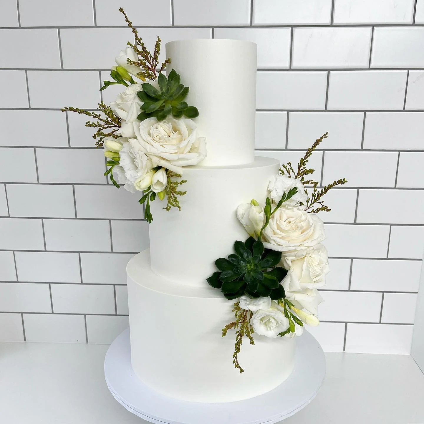 Of course! As with the majority of the cakes we produce, we ask that you send through the same floral inspiration images you have been exchanging with your florist, along with a description of the types of flowers you will be having and a colour scheme you wish to follow. With this, our florist will match your cake florals as closely as possible! You also get to choose the floral placement you would like for your cake, or you can leave this up to us!
